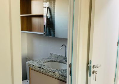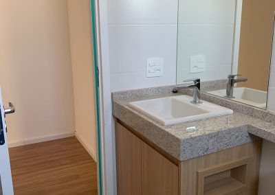 - Sustentabilidade Consciente: Utilize materiais ecológicos e soluções eficientes para o consumo de água e energia, como torneiras com aerador, descargas com caixa acoplada e sistemas de reuso de água.